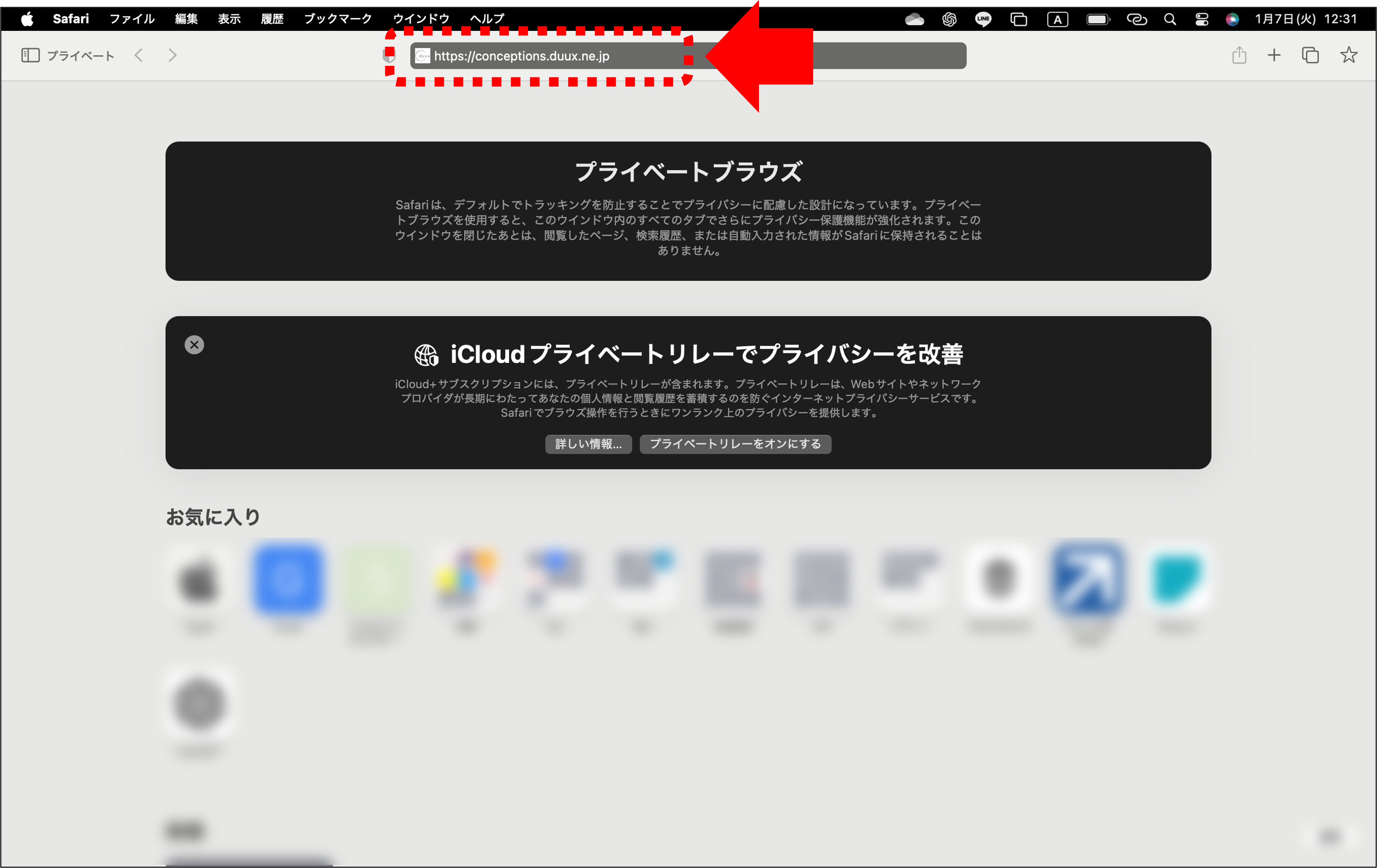 - 「新規プライベートウィンドウ」(プライベートブラウズ)で当社のWebサイトより予約サイトにアクセスしてください。