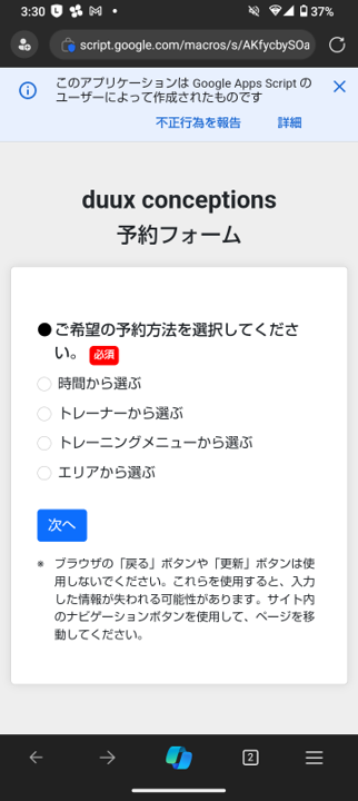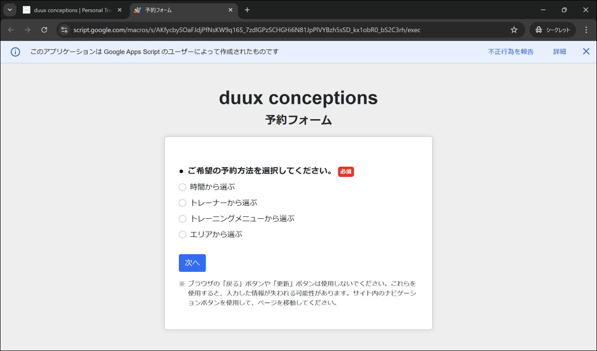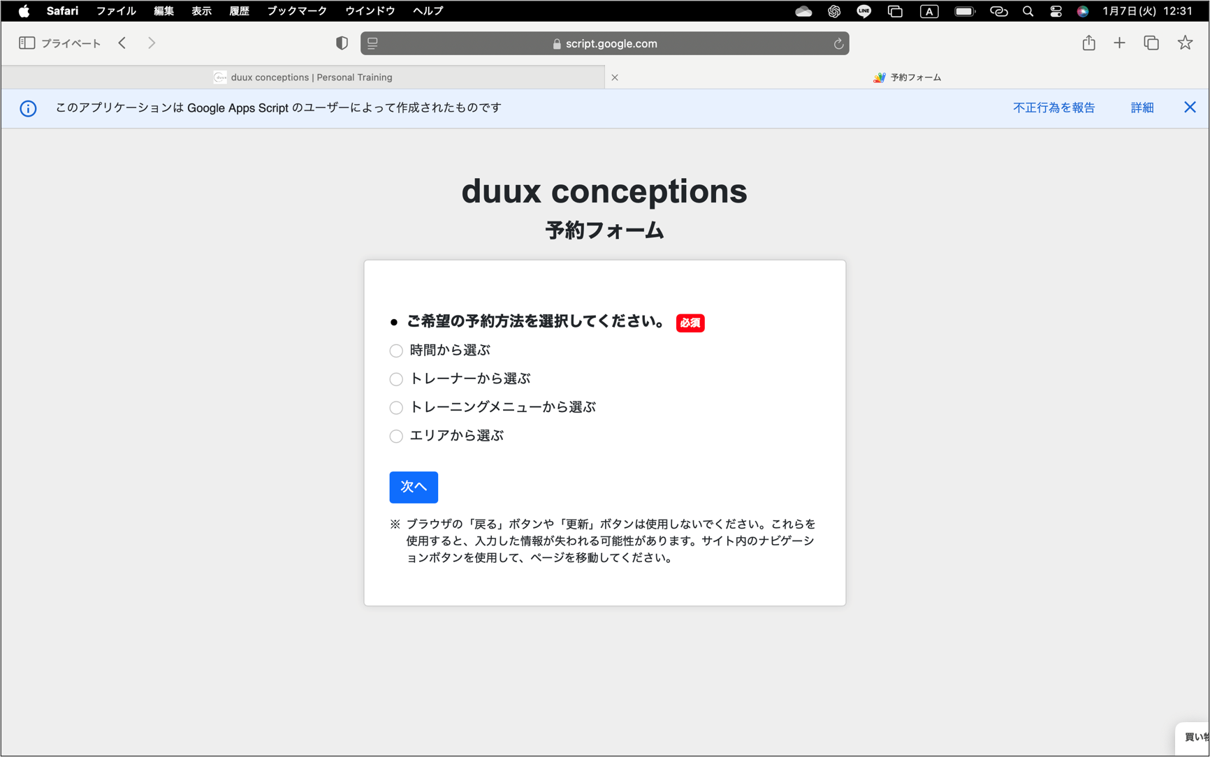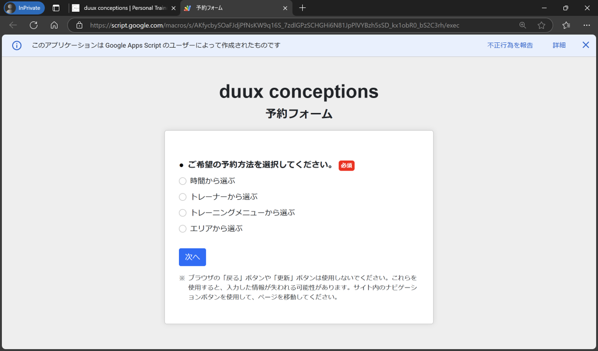 - 「プライベートモード」で当社のWebサイトより予約サイトにアクセスしてください。