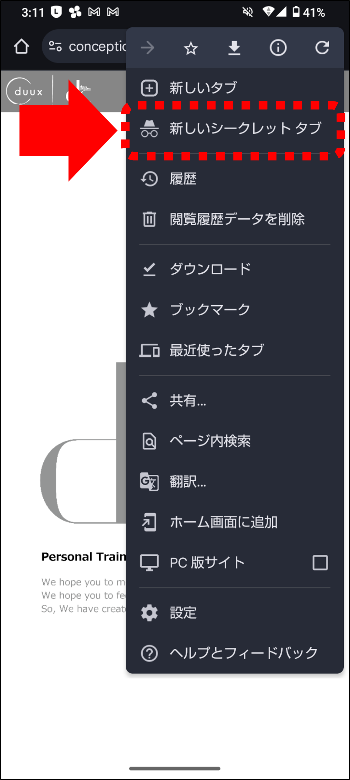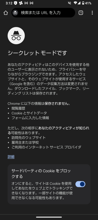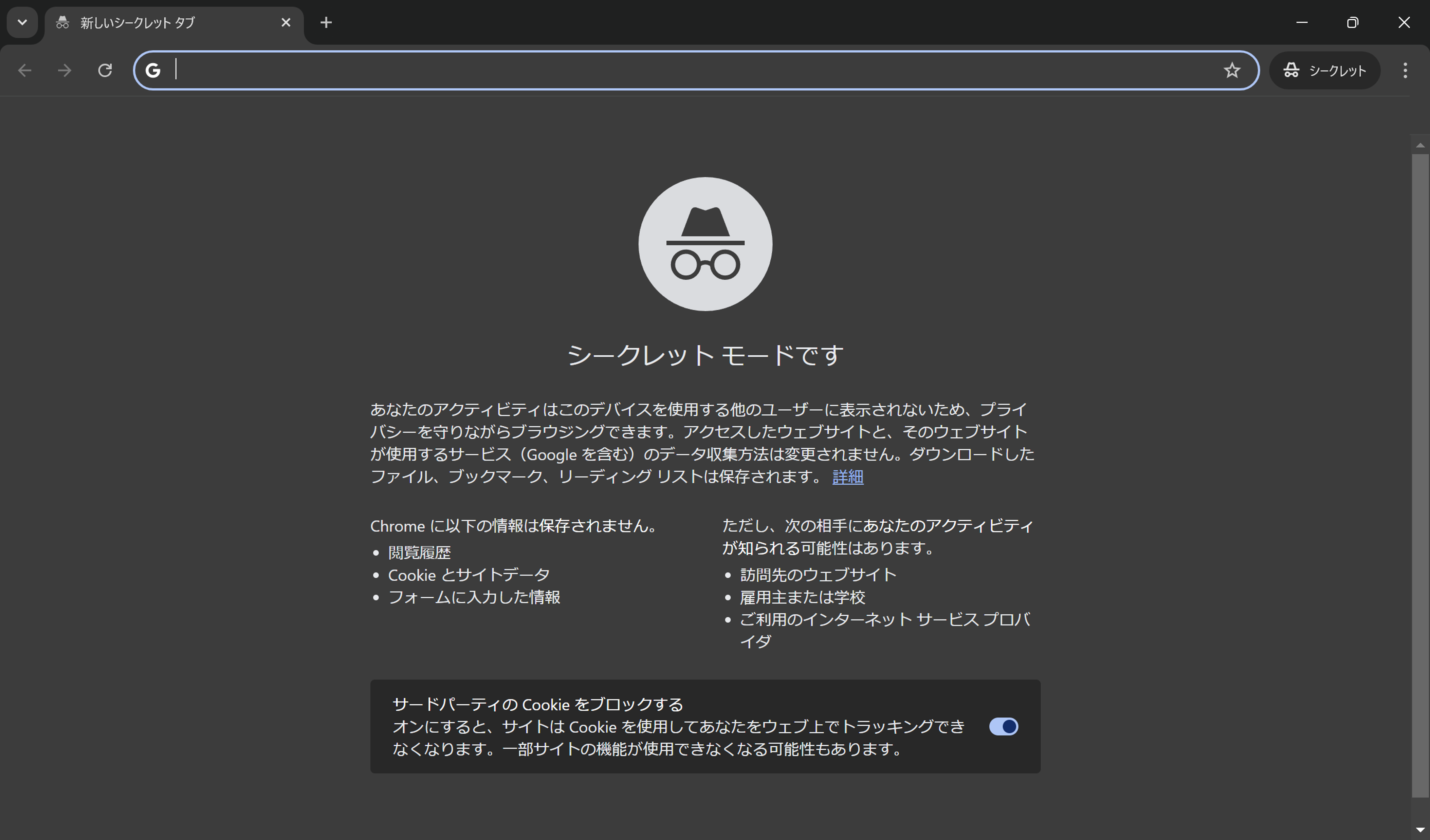 - 「新しいシークレット ウィンドウ」(シークレットモード)が開きます。