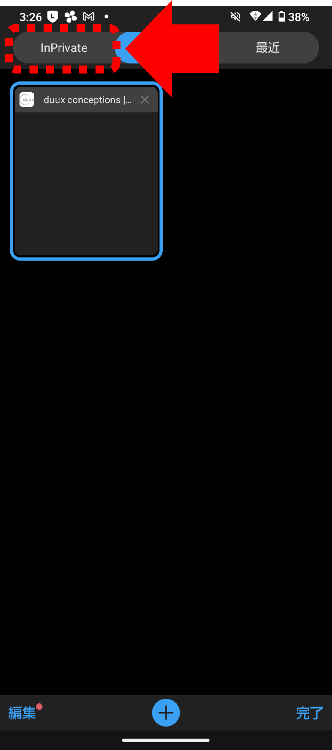 - 「InPrivate タブを開く」または「新規 InPrivate タブ」を選択