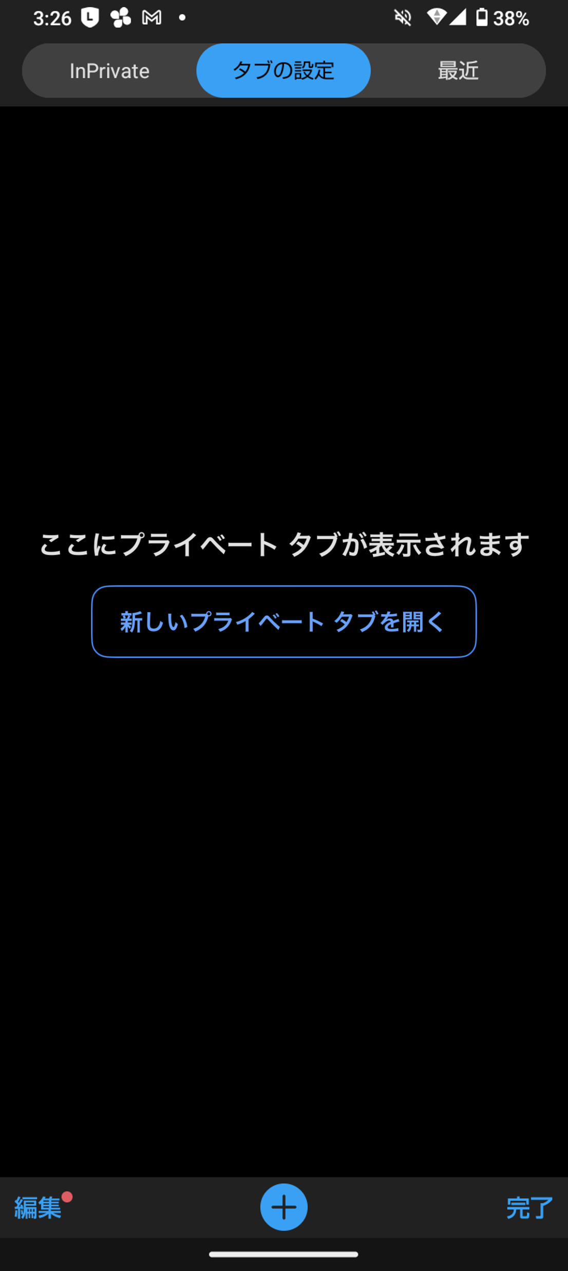 新しいタブが開かない場合、左下の「+」ボタンをタップすると新しいタブが開きます
