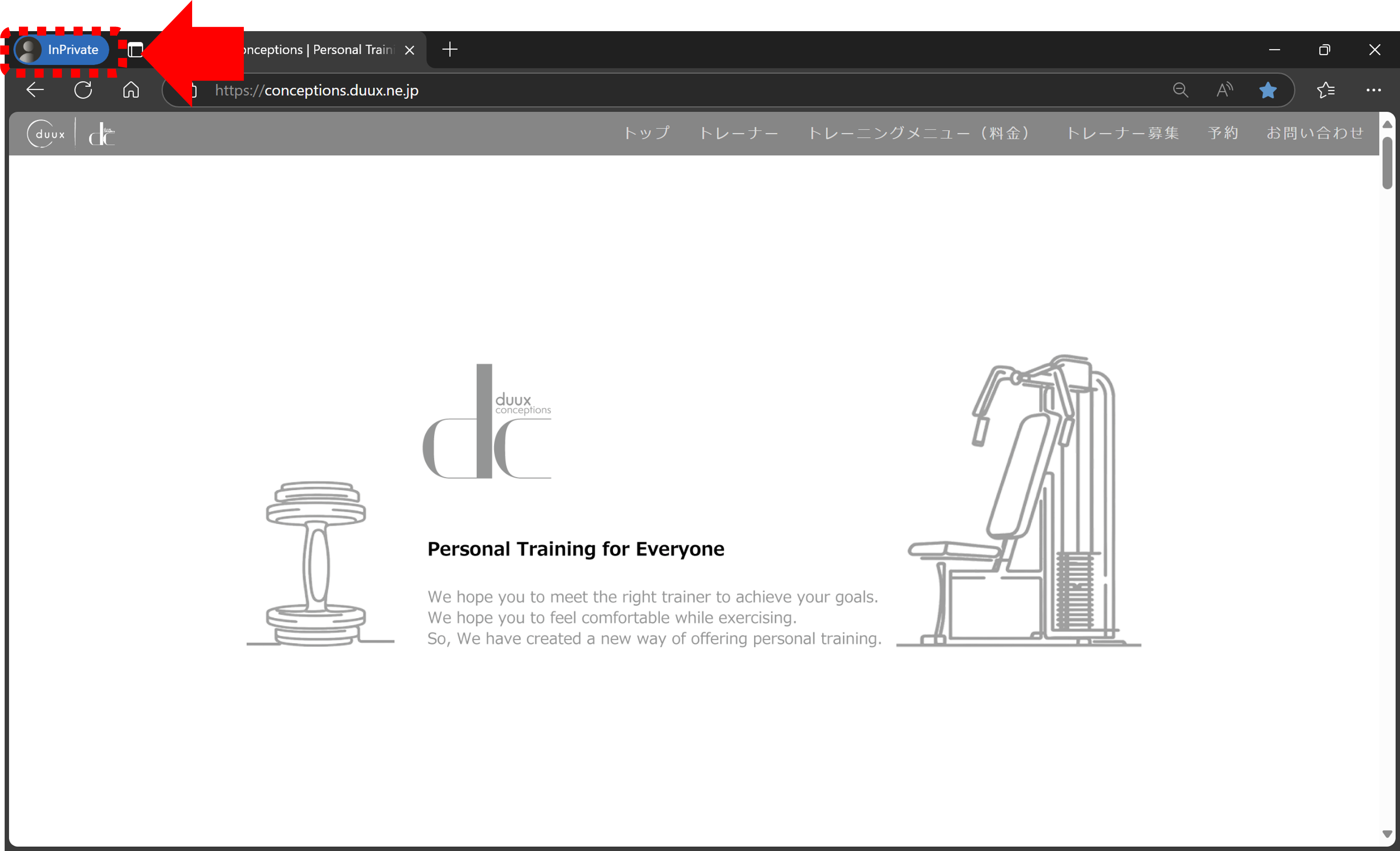 - 「InPrivate ブラウズ」(プライベートモード)で当社のWebサイトより予約サイトにアクセスしてください。