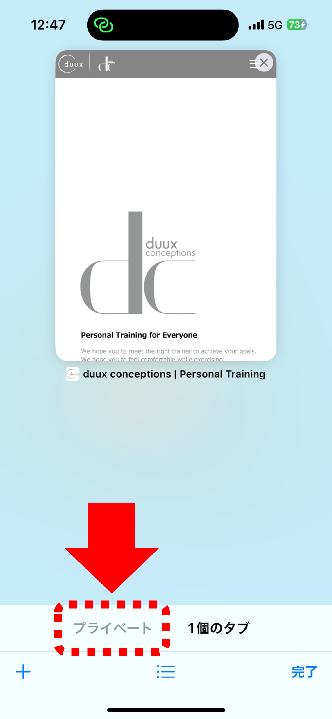 - Safariを開いて、タブボタン(画面右下の重なった四角アイコンなど)をタップ