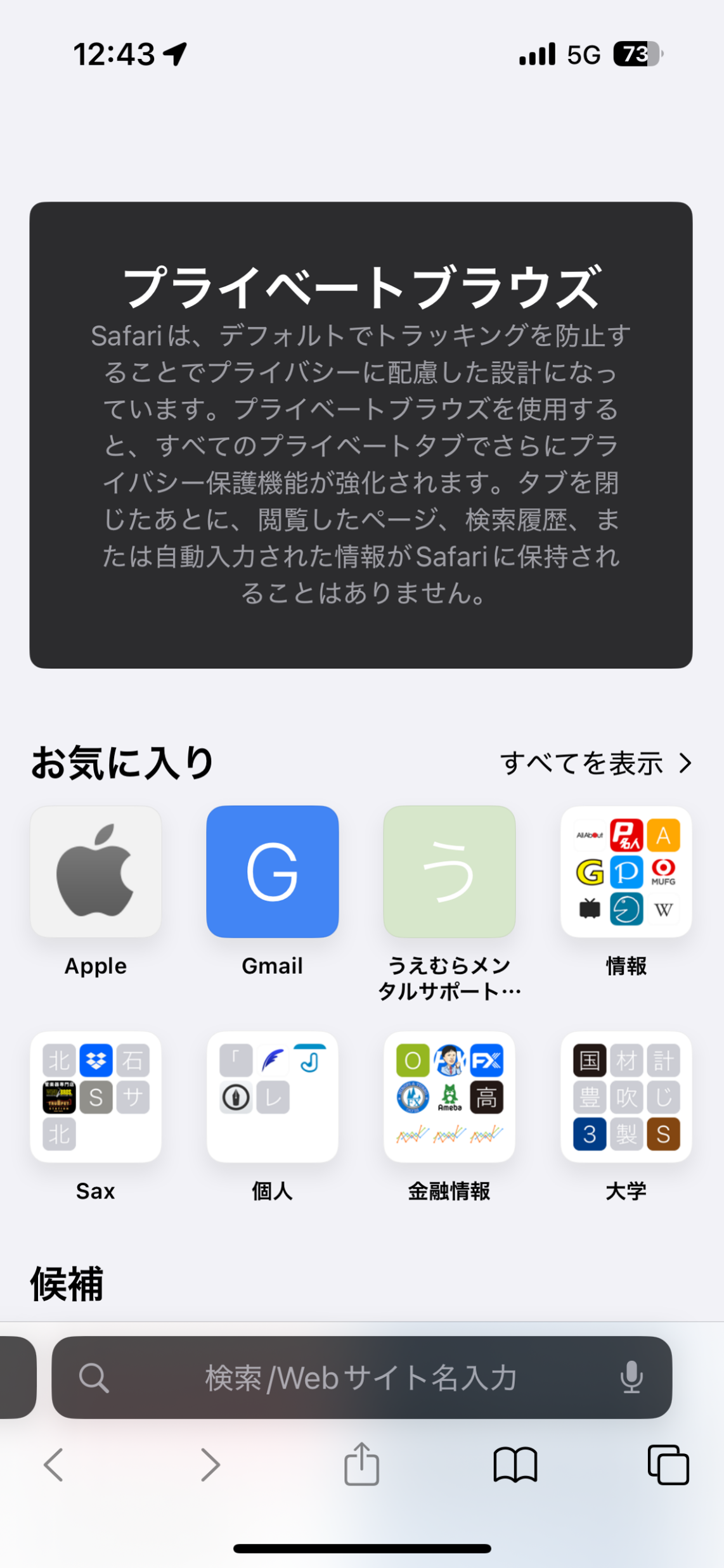 - 「新規プライベートウィンドウ」(プライベートブラウズ)が開きます。